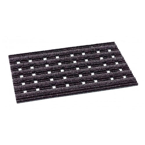 Praktisk Porta dørmåtte, der er fremstillet i grå nålefilt fra hollandske MD Entree. Børsterne på måtten fjerner snavs, jord og mudder fra sko og støvler, så det ikke kommer med ind på dit gulv. Dørmåtten er yderst vejrresistent, egner sig til udendørs brug og kan rengøres med kost.