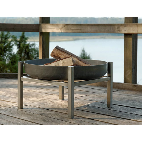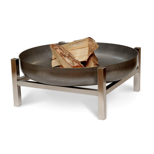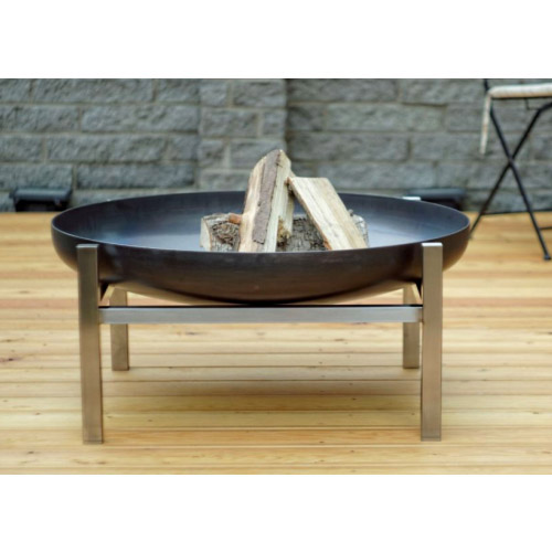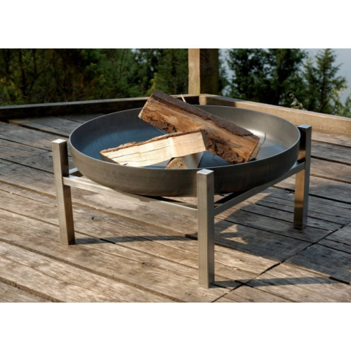 Stort designer bålfad i imponerende lækkert design. Selve det formpressede bålfad er fremstillet i kvalitets råstål med en tykkelse på 3,2 mm. Overfladebehandlet i antik mørk farve. Bålfadet ruster med tiden, så rust patina effekten opstår og står i en unik kontrast til stativets rustfrit stål look. Stativet er fremstillet i rustfrit stål.