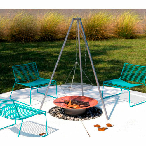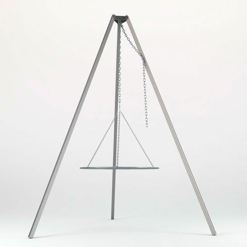Højkvalitets stativ til bålsted på tre ben, der er udført i kraftigt rustfrit stål for ekstra lang levetid. Fremstillet med en tykkelse på 1,5 mm. og benene måler hele 2,5 x 2,5 cm. Stativet er desuden sammenklappeligt og er derfor nemt at have med på ferie og andre udflugter. Passer til alle lagerførte bålfade på under 85 cm. i diameter og egner sig til grill ved 4-6 personer. Her får du mulighed for at lave spændende mad i haven og på hyggelige udflugter med familien. Stativet er produceret på et europæisk designer værksted og er stort set lavet i hånden, ligesom det lever op til de allerhøjeste kvalitets standarder.