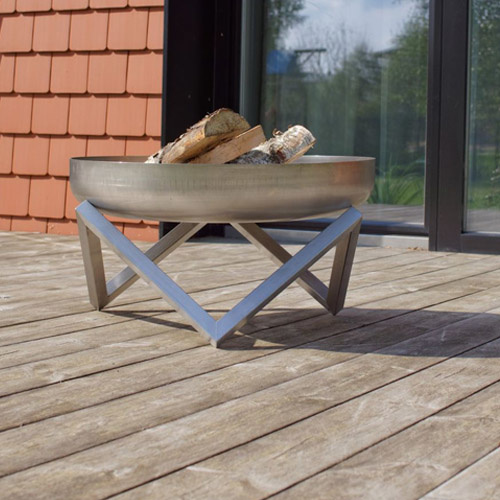 Stort designer bålfad i imponerende flot design. Selve det formpressede bålfad er fremstillet i kvalitets rustfrit stål med en tykkelse på 3,2 mm. Stativet er ligeledes fremstillet i rustfrit stål. Her får du et utroligt robust bålfad i absolut topkvalitet og samtidig har det en meget lang levetid.