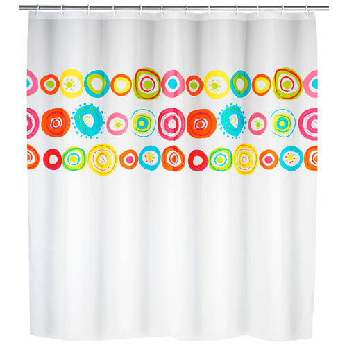 Kvalitets badeforhæng i farverigt design med hvid baggrund fra tyske Wenko. Badeforhænget er fremstillet i 100% PEVA plast, også betegnet som polyethynel-vinylacetat. Badeforhænget bidrager til charmen på dit badeværelse og gør brusebadet til en særlig oplevelse. Der medfølger 12 stk. hvide plastringe.
