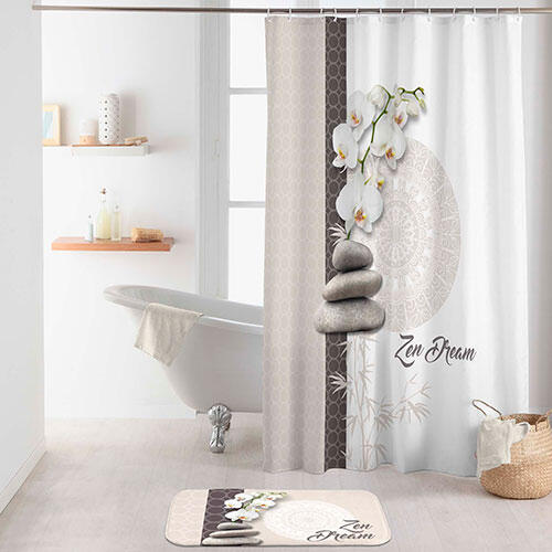 Attraktivt Orkide badeforhæng, der er fremstillet i vandafvisende 100% polyester og tåler vask ved 30 grader. Dette bruseforhæng fra hollandske Wicotex har forstærkede metaløjne til ophæng, så forhænget er nemt at udskifte og hænger sikkert derefter. Et badeforhæng der falder pænt, både når det er tørt og når det er vådt. Der medfølger 12 hvide plastringe til ophæng.