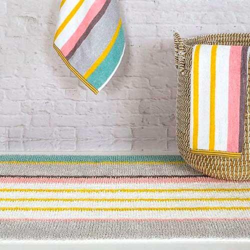 Lækker Medley bademåtte i topkvalitet og moderne design fra portugisiske Sorema. Badeværelsesmåtte, der er varm og komfortabel for dine fødder. Medley bademåtten er fremstillet i 100% bomuld, der giver dig en ekstra god komfort og holdbarhed. For-vasket fra fabrikken for at mindske krympning. Du kan tilkøbe håndklæder i samme design.