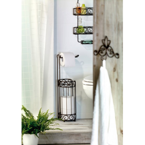 Praktiske badeværelse bruserhylde i rustik design til opbevaring af dine toiletartikler m.m. så du har dem lige der hvor du skal bruge dem. Hylden er fremstillet i pulverlakeret metal. Den er udstyret med 2 hylder, sæbehylde og ophængsøje. Velegnet til brug på badeværelset, i køkkenet m.m.