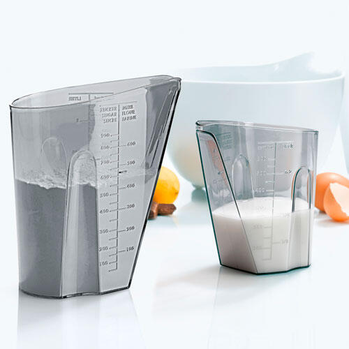 Med et Dosis målebæger sæt er du altid helt sikker på at få den rette mængde af flydende og tørre ingredienser, når du står i køkkenet. Det slanke design ligger perfekt i hånden og giver et sikkert greb. Mængderne er lette at aflæse pga. det transparente design. På målebægrene kan du aflæse mængderne: liter/mililiter og sukker/mel. Der medfølger 2 stk., hvoraf den ene rummer ½ liter og den anden 1 liter.