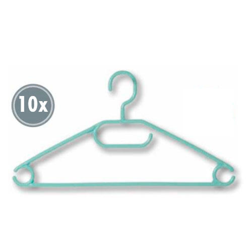 Praktiske og anvendelige bøjler i mintfarvet plast med drejekroge. Forsynet med anti-skrid, så tøjet ikke falder af bøjlerne. Ideel til brug af ophæng i skab eller lignende.