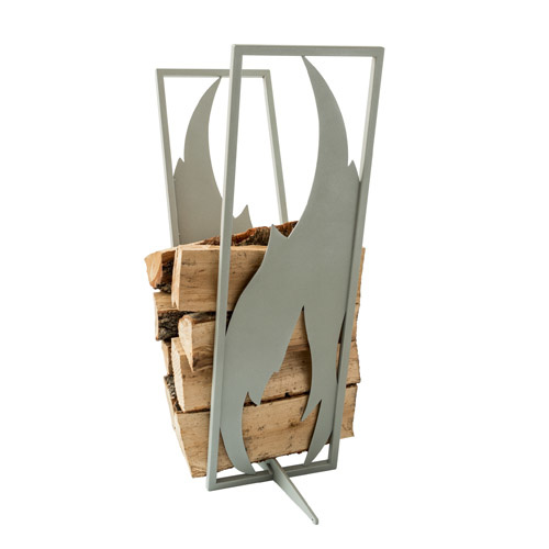 Lækker brændeholder i stilfuldt, minimalistisk grå design. Fremstillet i stål med en tykkelse på 1,5 cm. med slidstærk pulverlakering i grå. Træ motivet måler 1,5 mm. i tykkelsen. Meget let og super stabil brændeholder, der passer ind i ethvert hjem.
