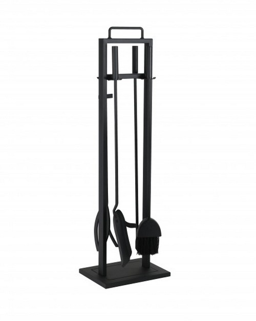 Praktisk og anvendeligt kvalitets pejsesæt i moderne sort design. Fremstillet i sort pulverlakeret stål med praktisk håndtag for løft. Sættet består af holder, skovl, kost og ildrager. Dermed indeholder pejsesættet alt det nødvendige i forbindelse med rengøring i og omkring brændeovnen, samt ildrager til at holde flammerne i gang.