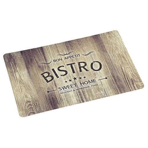 Dekorativ dækkeserviet i kvalitets plast med bistro motiv og skridsikker bund. Beskyt dit bord mod ridser og pletter med denne dekorative og praktiske dækkeserviet. Meget nem at rengøre efter brug, hvor den blot skal aftørres. Varmebestandig helt op til 90 grader.