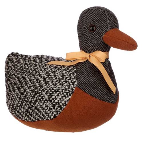 Praktisk og dekorativ dørstopper af sød and. Dørstopperen er fremstillet i polyester og er fyldt med 50/50 af fint sand og syntetisk vat.