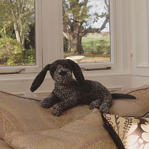 Utrolig sød Cocker Spaniel, der er håndsyet i uldboucle fra det populære Dora Designs med mange anvendelsesmuligheder. Designet af Angela Stevens og fyldt med polyester og sand. Kan både benyttes som almindelig dørstopper, bogstøtte og som pyntegenstand/samleobjekt i hjemmet. Vejer 1,5 kg. og det er i den grad et produkt man skal have i hænderne for at mærke den super gode kvalitet, der gør sig gældende.