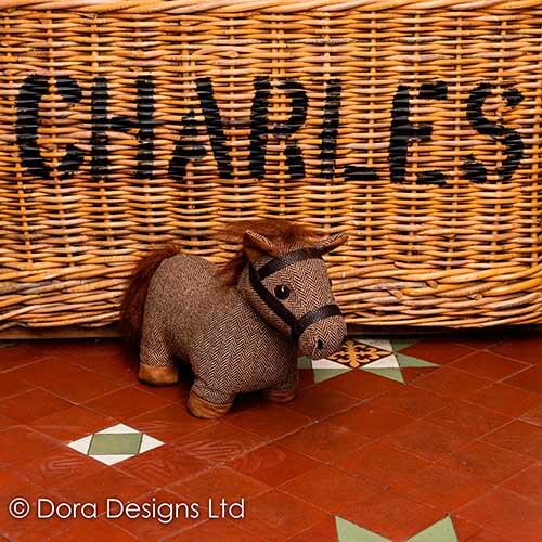 Utrolig nuttet Ellie Horse, der er håndsyet i det fineste sildebensmønstrede bomuld/uld fra det populære Dora Designs med mange anvendelsesmuligheder. Kan både benyttes som almindelig dørstopper, bogstøtte og som pyntegenstand/samleobjekt i hjemmet. Vejer ca. 1,7 kg. og det er i den grad et produkt man skal have i hænderne for at mærke den super gode kvalitet, der gør sig gældende. Fyldt med polyester og sand.
