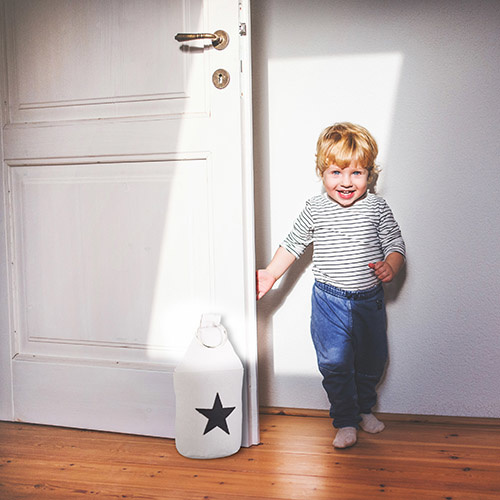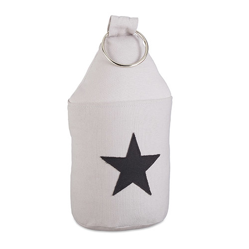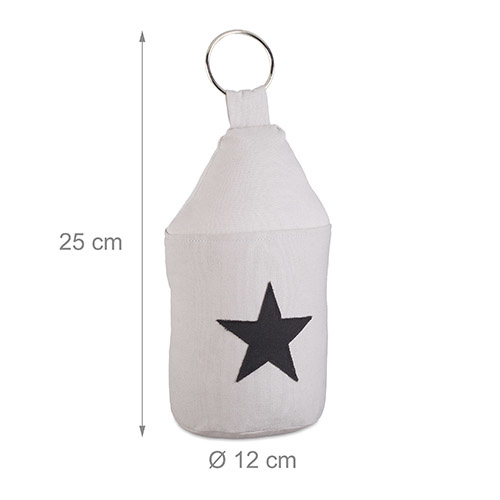Praktisk og dekorativ dørstopper med stjerne, der er fremstillet i polyester og fyldt med fint sand. Forsynet med solidt metal håndtag. Også velegnet til terrassedør.