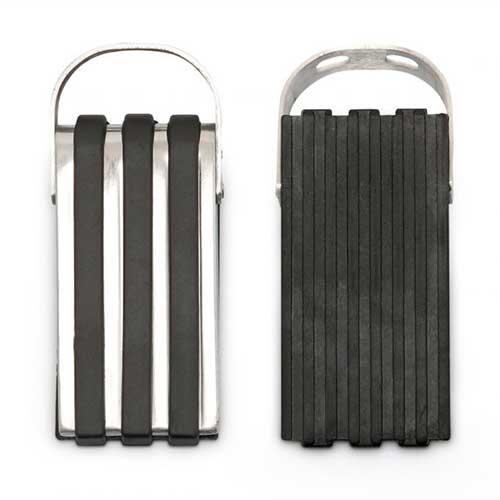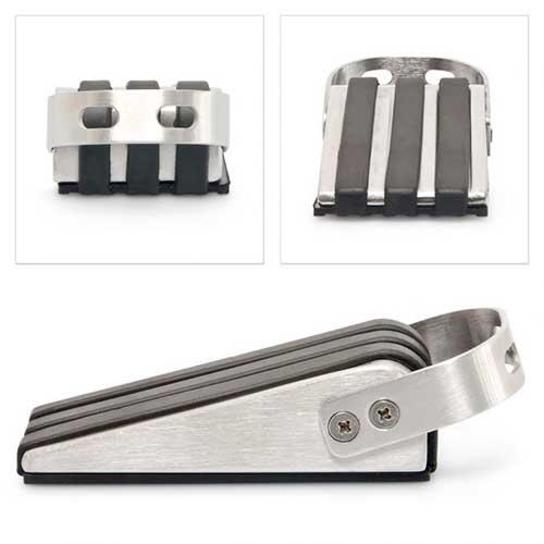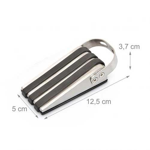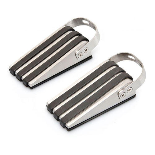 Praktisk dørstopper sæt med to stk., der er fremstillet i gummi og rustfrit stål og udformet som kile. Smart løsning til at beskytte dørene og væggene i hjemmet.