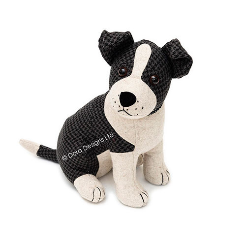 Bedårende Jett the Border Collie, der er fremstillet i uldbouclé og "dog tooth" stof fra det populære Dora Designs med mange anvendelsesmuligheder. Designet af Angela Stevens og fyldt med polyester og sand. Kan både benyttes som almindelig dørstopper, bogstøtte og som pyntegenstand/samleobjekt i hjemmet. Vejer 1,7 kg. og det er i den grad et produkt man skal have i hænderne for at mærke den super gode kvalitet, der gør sig gældende.