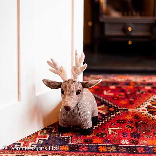Utrolig nuttet Jolly Fallow Deer, der er håndsyet i det fineste sildebensmønstrede bomuld/uld fra det populære Dora Designs med mange anvendelsesmuligheder. Kan både benyttes som almindelig dørstopper, bogstøtte og som pyntegenstand/samleobjekt i hjemmet. Vejer ca. 1,7 kg. og det er i den grad et produkt man skal have i hænderne for at mærke den super gode kvalitet, der gør sig gældende. Fyldt med polyester og sand.