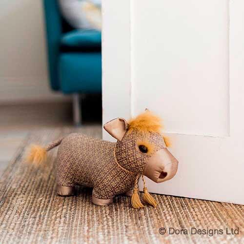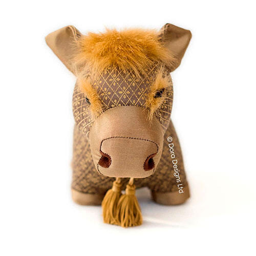Utrolig nuttet Judie Jersey Cow i brokade stof fra det populære Dora Designs med mange anvendelsesmuligheder. Designet af Angela Stevens og fyldt med en blanding af polyester og sand. Kan både benyttes som almindelig dørstopper, bogstøtte og som pyntegenstand/samleobjekt i hjemmet. Vejer ca. 1,5 kg. og det er i den grad et produkt man skal have i hænderne for at mærke den super gode kvalitet, der gør sig gældende.