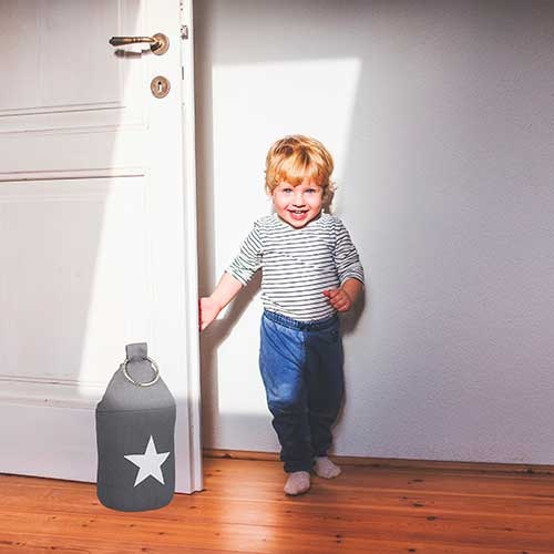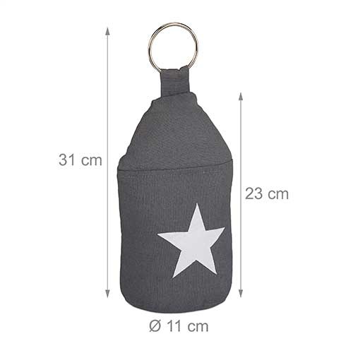 Praktisk og dekorativ dørstopper med stjerne, der er fremstillet i polyester og fyldt med fint sand. Forsynet med solidt metal håndtag. Også velegnet til terrassedør.