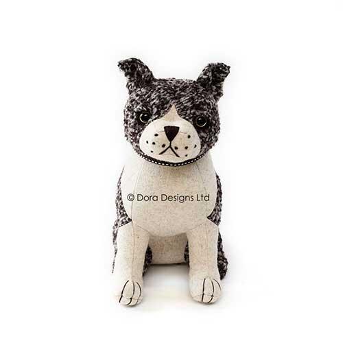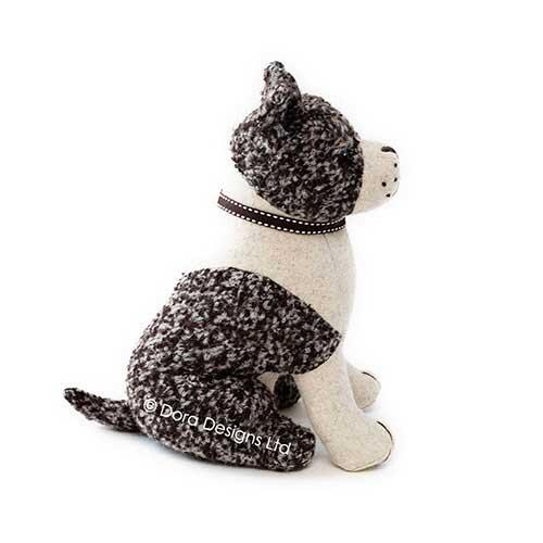Utrolig nuttet Rocky Staffie, der er fremstillet i uldboucle fra det populære Dora Designs med mange anvendelsesmuligheder. Designet af Angela Stevens og fyldt med polyester og sand. Kan både benyttes som almindelig dørstopper, bogstøtte og som pyntegenstand/samleobjekt i hjemmet. Vejer ca. 1,5 kg. og det er i den grad et produkt man skal have i hænderne for at mærke den super gode kvalitet, der gør sig gældende.