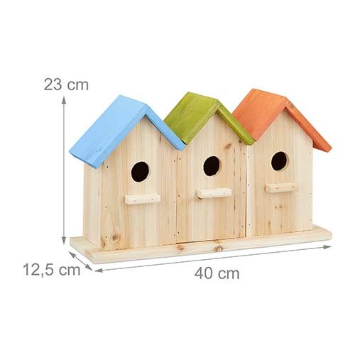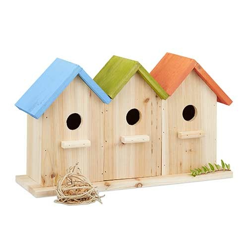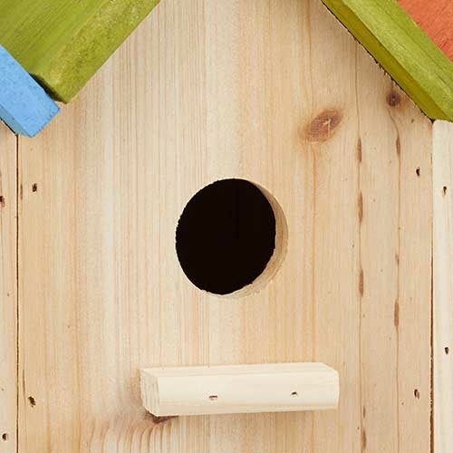 Dekorative redekasser i grantræ med 3,2 cm. hul til småfugle som mejser og spurve. Takket været de små huller i redekasserne er småfuglene beskyttet mod regn og vind. Få liv i haven med en farverig redekasse, der er fremstillet i træ.
