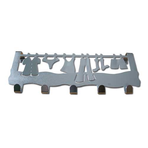 Praktisk håndklædeholder, der er fremstillet i krom til ophæng på standard dør. Dørhængeren er forsynet med 5 knager til ophæng af håndklæder, tøj m.m.