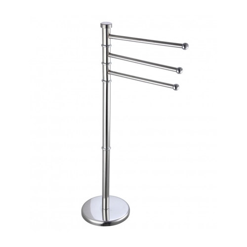 Fritstående håndklædeholder i elegant design, der er fremstillet i forkromet stål. Håndklædestativet er forsynet med 3 svingarme, der kan dreje 360 grader, og massiv fod for øget stabilitet. Flot kombination af praktisk funktionalitet og design i et.