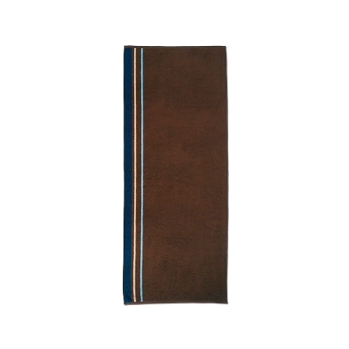 Lækkert Ladessa sauna håndklæde fra tyske Kela i god kvalitet. Fremstillet i 100% bomuld i brunt jaquardvævet stof med striber på.