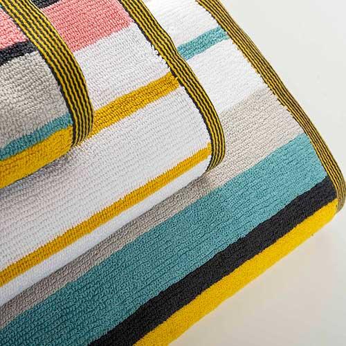 Lækre Medley håndklæder i topkvalitet og moderne farver fra portugisiske Sorema. Håndklæder, der er super bløde og behagelige at vikle om sig efter et bad. Medley håndklæderne er fremstillet af det allerfineste bomuld og består af 100% bomuld med en vægt på 530g/m2. Forsynet med indfarvet strop i siden. Fuldend dit badeværelsestema med Medley, hvor du kan tilkøbe bademåtte i samme design.