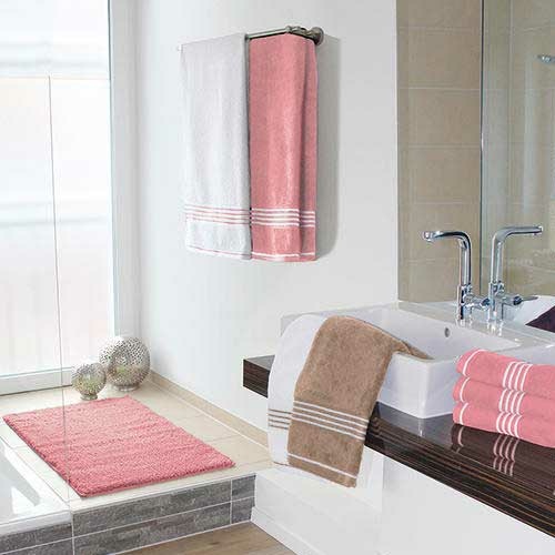 Håndklæderne har en unik suge- og tørreevne, og er forsynet med kraftig indfarvet strop i top. Rio-serien findes i 2 forskellige størrelser. Du kan ligeledes tilkøbe bademåtter i gammel rosa fra Rio-serien og få ægte brasiliansk livsstil tilføjet til dit hjem. Håndklæderne tåler vask ved 60 grader, samt tørretumbling.
