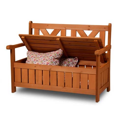 Kvalitets Monaco havebænk i vejrbestandigt materiale. Træbænken er fremstillet i massivt fyrretræ med stort og praktisk opbevaringsrum til havehynder og legetøj m.m. Bænken leveres usamlet, men består af ganske få dele og er dermed utrolig hurtig at samle. Velegnet til 2 personer til brug på altan, camping, den ekstra solterrasse eller i havens hyggekrog.
