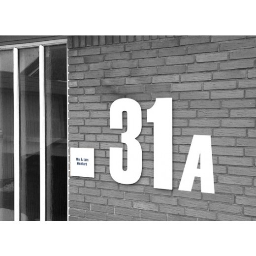 Eksklusivt hvidt bogstav i vejrbestandigt materiale. Et tydeligt husnummer med tilhørende bogstav er en vigtig del af fronten på din bolig. Det er vigtigt at andre nemt kan finde netop din bolig, når der skal afleveres post og pakker, når nye venner kommer på besøg eller hvis uheldet er ude, at et udrykningskøretøj hurtigt kan finde frem til dig.