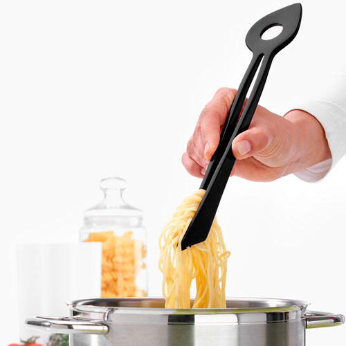 Smart multifunktionelt køkkenredskab, der kombinerer grydeske og tang i én. Fremstillet i robust termoplast med blød og behagelig belægning, der tilmed er varmeresistent op til 220 grader. Nomineret til German Design Award 2015. Fra tyske Koziol og designet af Julian Appelius, Berlin. Tåler opvaskemaskine og samtidig fri for BPA og melamin.