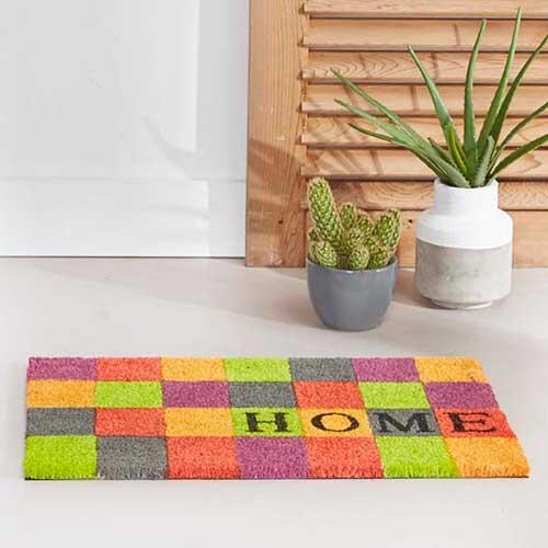 Kvalitets Fancy Home kokosmåtte i 100% kokos med akryl print af høj kvalitet. Iøjnfaldende dørmåtte til fordøren i kvalitets kokos med skridsikker bagside i form af non-slip Vinyl Back™.