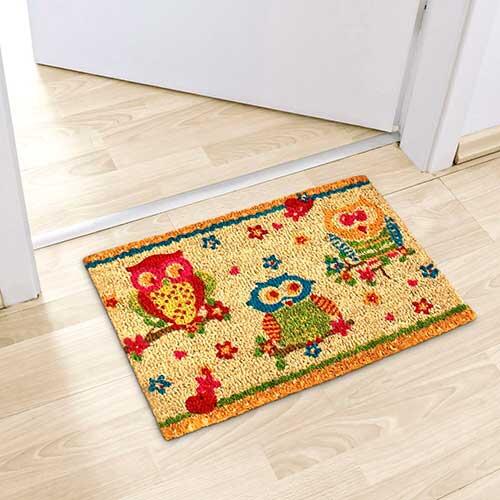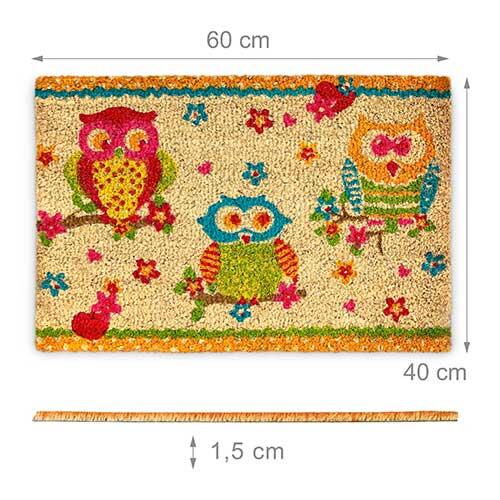 Flerfarvede ugler kokosmåtte - 40 x 60 cm.