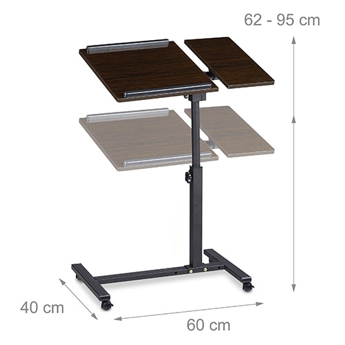 Bordet kan indstilles i højden fra 62-95 cm., så du får den rigtige vinkel og højde på den bærbare enhed.
