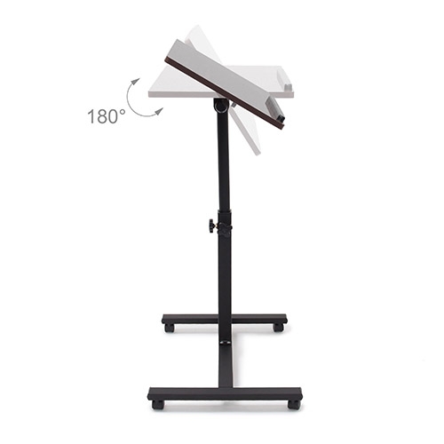 Kvalitets bord til bærbar computer, der er fremstillet i sort pulverlakeret stål og malede MDF plader. Her kan du placere din bærbare enhed på bordet, stille det ved sengen, ved sofaen m.m. Laptop bordet er et stabilt underlag for din bærbare PC, der samtidig er forsynet med to justerbare flader. Det er muligt at dreje hele stativet 360 grader, hvor arbejdsfladen også kan justeres med en hældning på op til 180 graders vinkel. Bordet er desuden forsynet med 4 hjul, der kan bremses så bordet står sikkert fast. Dermed er det muligt at indstille bordet så det kan tilpasses til netop dine behov.
