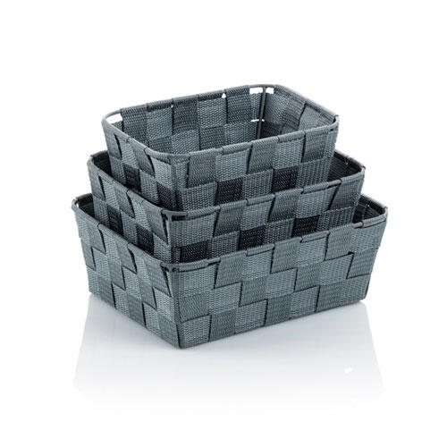 Praktiske Alvaro opbevaringskurve i sæt med 3 stk. i grå. Fremstillet i holdbart plast. Særdeles anvendeligt sæt til opbevaring på badeværelset, i køkkenet eller stuen m.m.