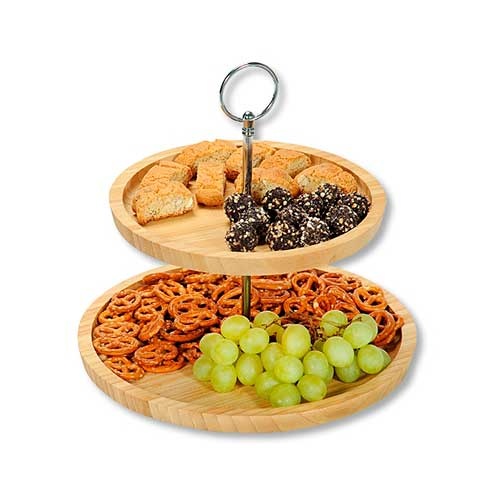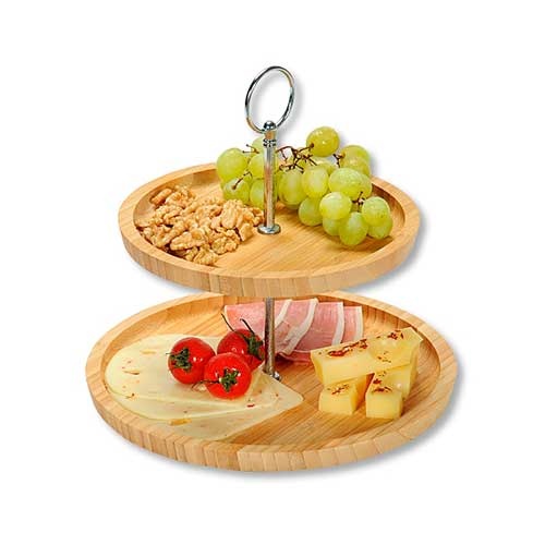 Kvalitets bambus opsats til servering og anretning af snacks, frugt og grønt m.m. Denne opsats giver dig mulighed for at servere indbydende snacks på bordet, når der eksempelvis kommer gæster på besøg. Opsatsen er fremstillet i bæredygtigt og miljøvenligt bambustræ med metaløje for nem transport af opsatsen.