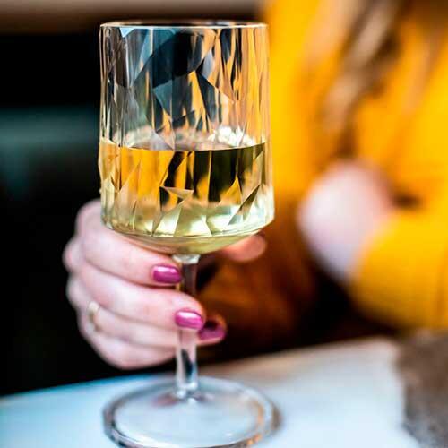 Her får du et tiltalende design og vinglas, der ligger fantastisk i hånden. Tåler opvaskemaskine.