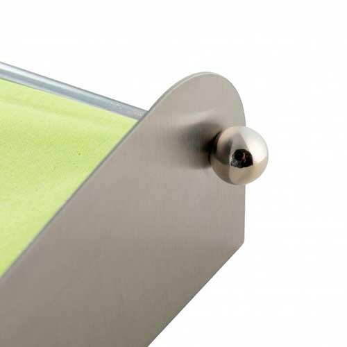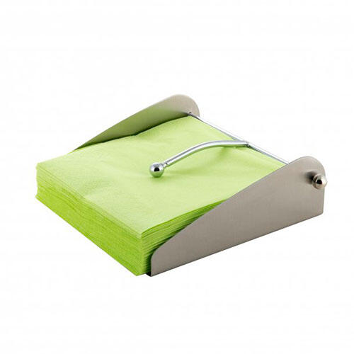 Praktisk servietholder med vægtstang, der hindre servietterne i at blæse væk. Både funktionel og dekorativ at have stående på bordet. Fremstillet i børstet rustfrit stål med en materialetykkelse på 1 mm. Særdeles anvendelig udenfor når der grilles. Passer til servietter, der måler 17 x 17 cm.