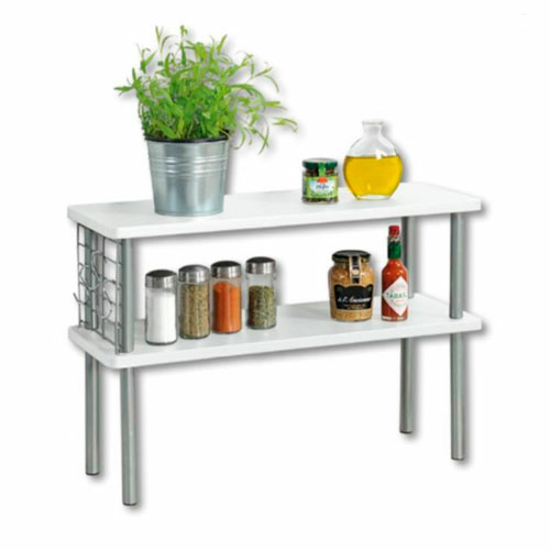 Smart og praktisk køkkenbordshylde med god opbevaringsplads. Fremstillet med metal ben og FSC-certificerede fiberplader i hvidt design. Her får du et smart og multifunktionelt opbevaringssystem til dit køkkenbord, der netop giver dig den plads du står og mangler.