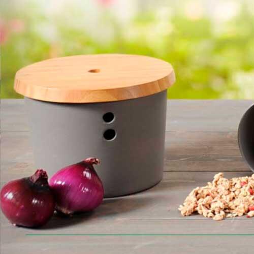 Denne praktiske opbevaringskrukke er uundværlig i køkkenet, især hvis du holder af god køkkenøkonomi og går ind for at reducere madspild. Luftcirkulationen sørger for at indholdet holder sig friskt og lækkert i længere tid. Eksempelvis til rødløg, salatløg.