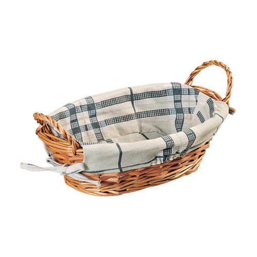 Brødkurv i oval flet med aftagelig tekstil. Forsynet med håndtag i begge sider. Med denne brødkurv kan du servere brød og andet bagværk på den mest indbydende måde.