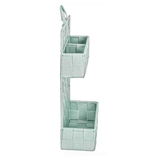 Praktisk Adria opbevaringskurv i turkis med tre opbevaringsrum og mulighed for ophæng. Fra tyske Wenko og fremstillet i holdbart pp-plast. Særdeles anvendelig til opbevaring på badeværelset eller i gangen m.m.