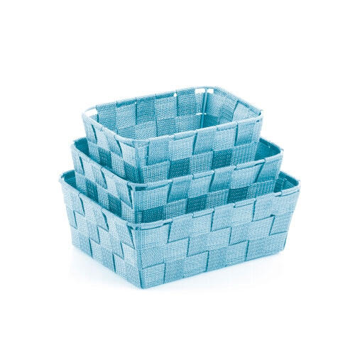 Praktiske Alvaro opbevaringskurve i sæt med 3 stk. i frost blå. Fremstillet i holdbart plast. Særdeles anvendeligt sæt til opbevaring på badeværelset, i køkkenet eller stuen m.m.