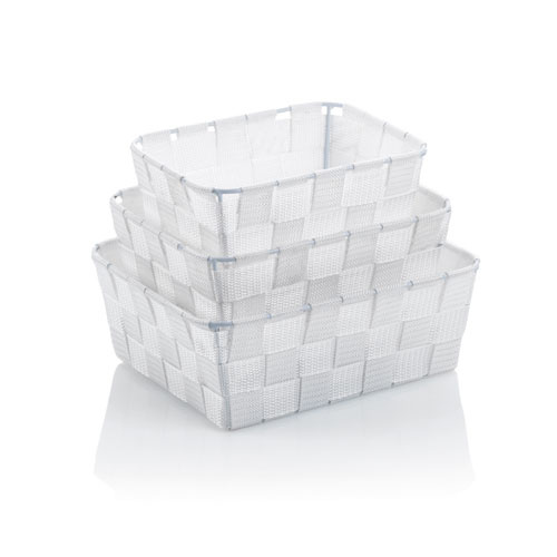 Praktiske Alvaro opbevaringskurve i sæt med 3 stk. i hvid. Fremstillet i holdbart plast. Særdeles anvendeligt sæt til opbevaring på badeværelset, i køkkenet eller stuen m.m.