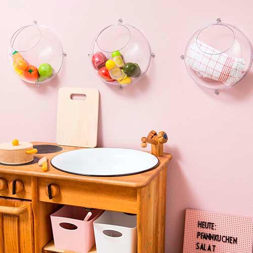 Smart lille pladsbesparende mirakel til væggen i hjemmet, hvor du på dekorativ vis kan opbevare legetøj, huer, handsker og halstørklæder m.m. Takket være det transparente design kan du tydeligt se indholdet i beholderen og den store åbning gør det kun endnu nemmere at gemme ting væk og tømme beholderen igen. Genialiteten kommer fra tyske Koziol og beholderne er fremstillet i deres velkendte termoplast materiale. Sættet består af to beholdere, der hver monteres med fire skruer i væggen.