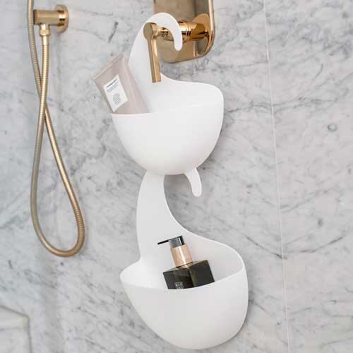 Praktisk anordning til opbevaring af badeartikler ved bruseren fra tyske Koziol. Fremstillet i robust termoplast og forsynet med to smalle sprækker i bunden, hvor vandet kan løbe ud. Det er ligeledes muligt at sammensætte flere i forlængelse af hinanden. Designet af Annette Lang, Wiesbaden.