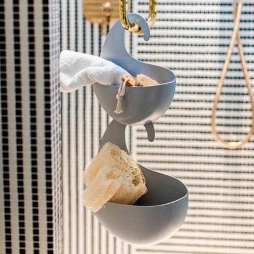 Praktisk anordning til opbevaring af badeartikler ved bruseren fra tyske Koziol. Fremstillet i robust termoplast og forsynet med to smalle sprækker i bunden, hvor vandet kan løbe ud. Det er ligeledes muligt at sammensætte flere i forlængelse af hinanden. Designet af Annette Lang, Wiesbaden.