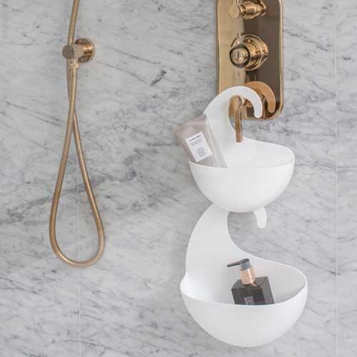 Praktisk anordning til opbevaring af badeartikler ved bruseren fra tyske Koziol. Fremstillet i robust termoplast og forsynet med to smalle sprækker i bunden, hvor vandet kan løbe ud. Det er ligeledes muligt at sammensætte flere i forlængelse af hinanden. Designet af Annette Lang, Wiesbaden.
